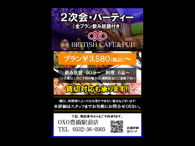 With it's handy location near Toyohashi Station, OXO is perfect for parties of all kinds. Feel free to get in touch with us and discuss your needs.